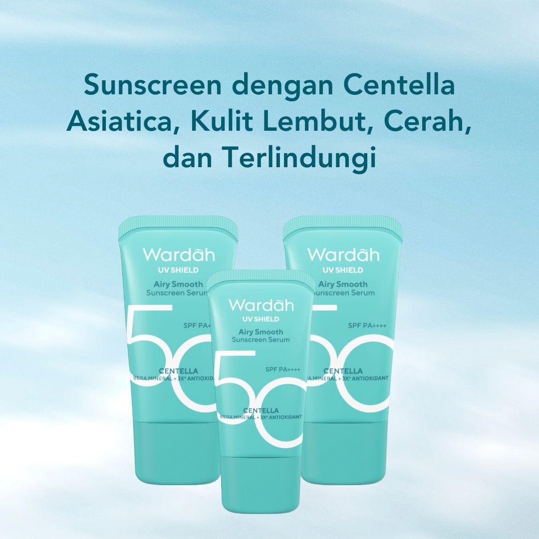 Sunscreen dengan Centella asiatica dari Wardah bisa menjadi sahabat untuk kulit kamu, Beauties. Formula terbaiknya siap melindungi dan merawat kulit tanpa bikin wajah terlihat kusam dan berminyak! Pakai secara rutin setiap hari untuk hasil maksimal, ya.