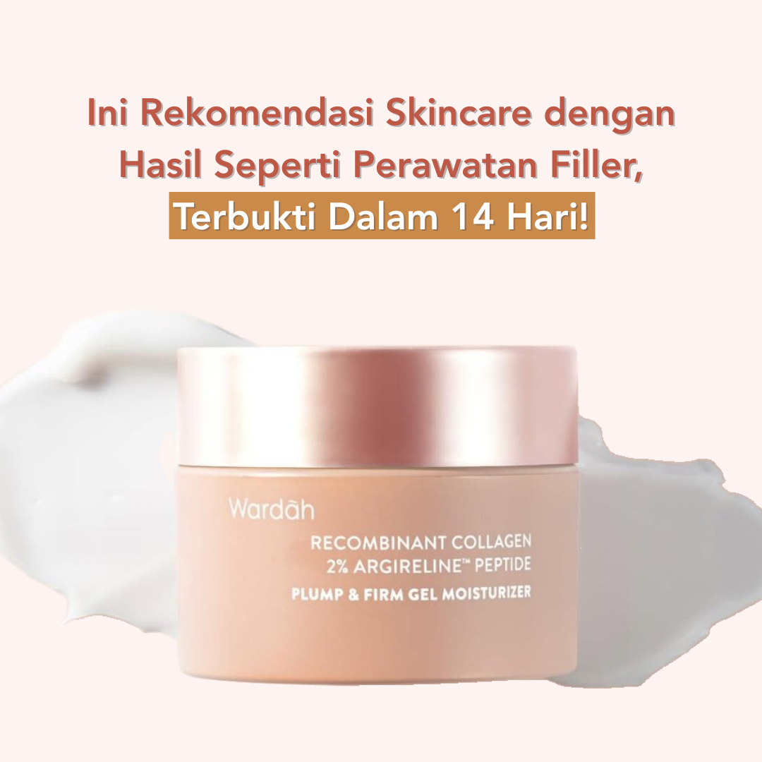 Kalau kamu sedang mencari skincare anti-aging dengan efektivitas klinis tapi tetap nyaman digunakan sehari-hari, Wardah Recombinant Collagen Plump & Firm Gel Moisturizer adalah jawabannya. Dengan formula ringan yang blendable, hasil nyata dalam 14 hari, serta terdapat kandungan bahan aktif seperti recombinant collagen, argireline™ peptide dan ceramide complex, kamu bisa punya kulit glowing, kencang, dan sehat, tanpa perlu filler!