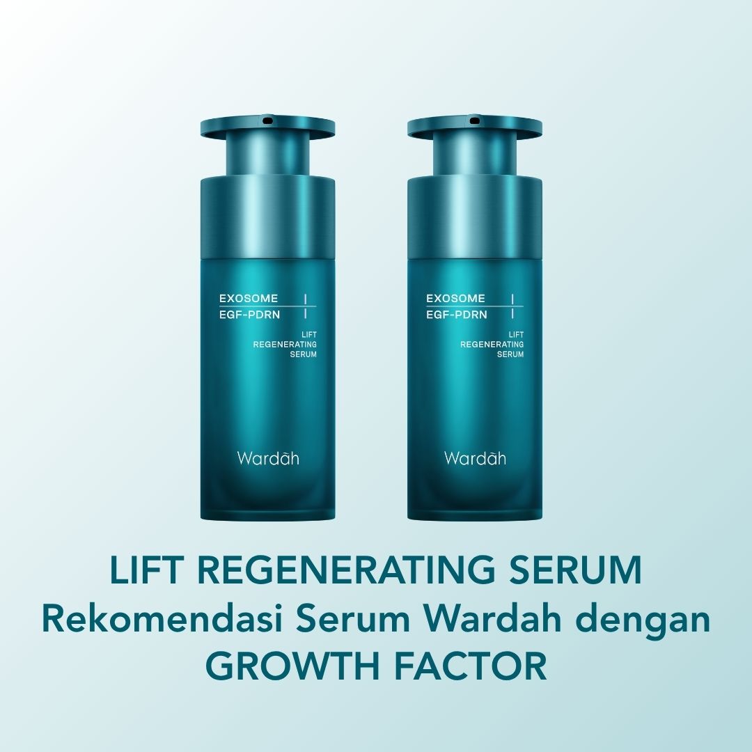 Wardah Lift Regenerating Serum mengandung epidermal growth factor (EGF). EGF yang merupakan small polypeptide bermanfaat untuk mencegah munculnya tanda-tanda penuaan dini.