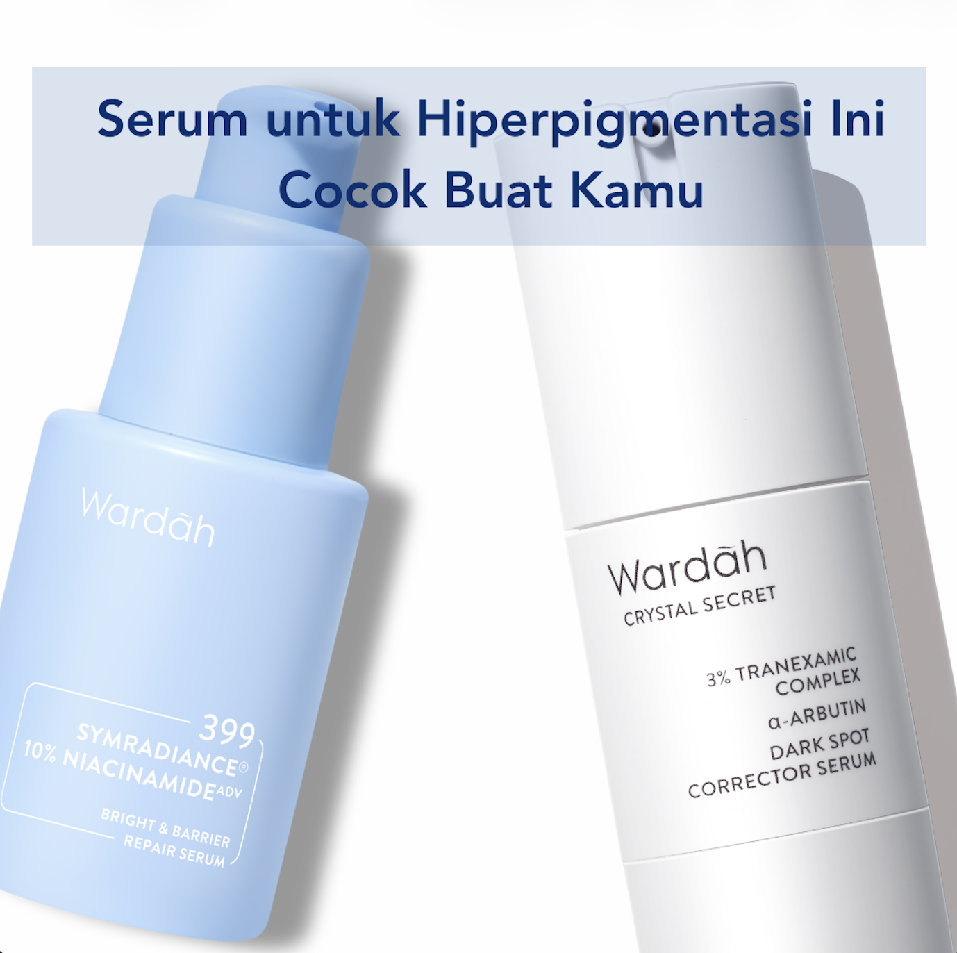 Wardah SymRadiance ® 399 Bright & Barrier Repair Serum sangat direkomendasikan untuk mengatasi hiperpigmentasi. Produk ini dapat menghambat pembentukan melanin. Serum ini bekerja dengan dua cara, yaitu melanocontrol untuk menghambat pembentukan melanin dengan cara melindungi kulit dari polusi dan radikal bebas, serta melanoblocker untuk mencegah transfer melanin ke sel kulit.