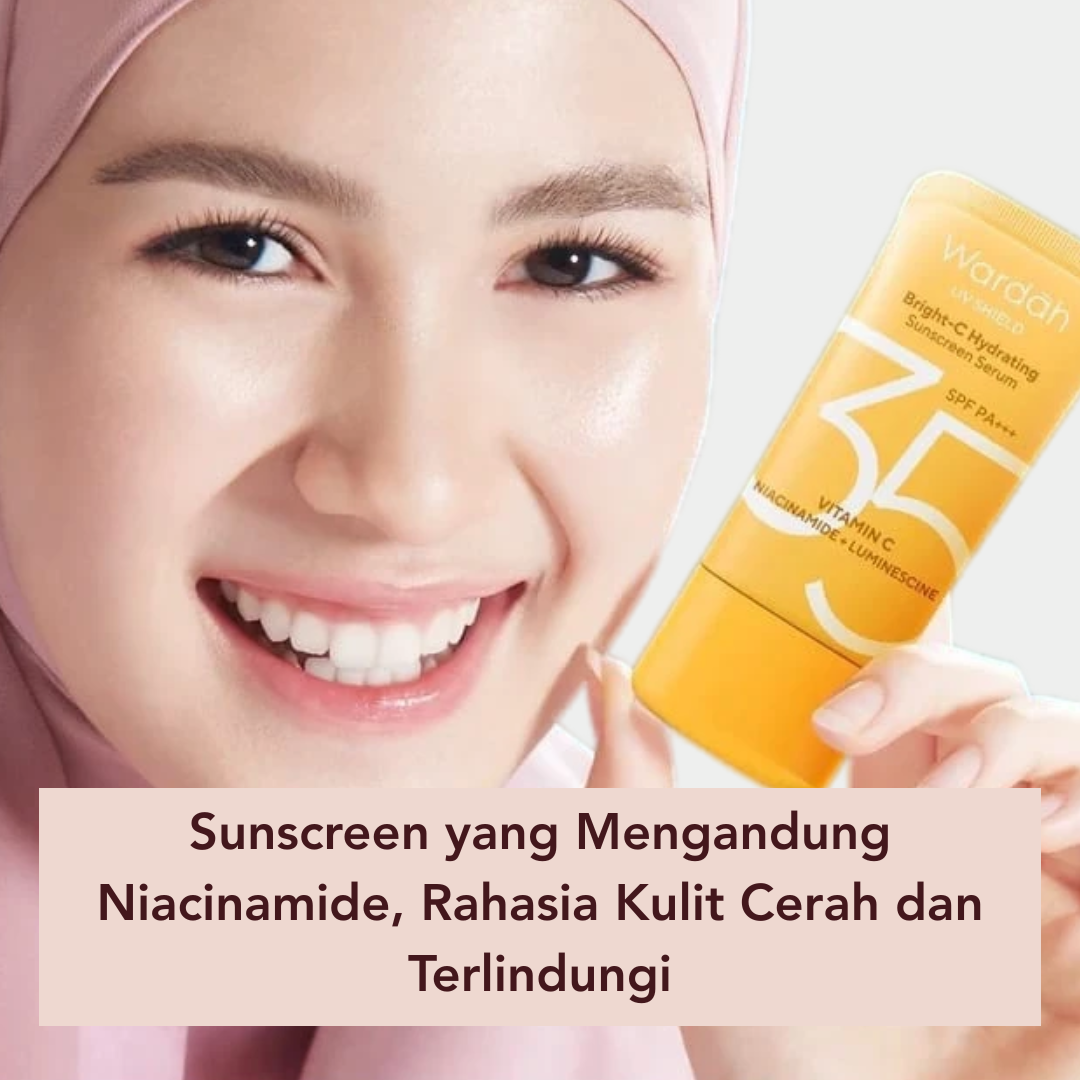 Beauties, menggunakan sunscreen memang sangat penting, tapi jangan lupa memilih sunscreen dengan kandungan niacinamide, ya. Wardah UV Shield Bright-C Hydrating Sunscreen Serum SPF35 PA+++ mengandung niacinamide yang membantu mencerahkan kulit sekaligus memperkuat skin barrier. Dengan kandungan bahan aktif yang mampu melindungi kulit dari sinar matahari dan blue light, kulit wajahmu akan tetap sehat, cerah, dan terawat setiap hari.
